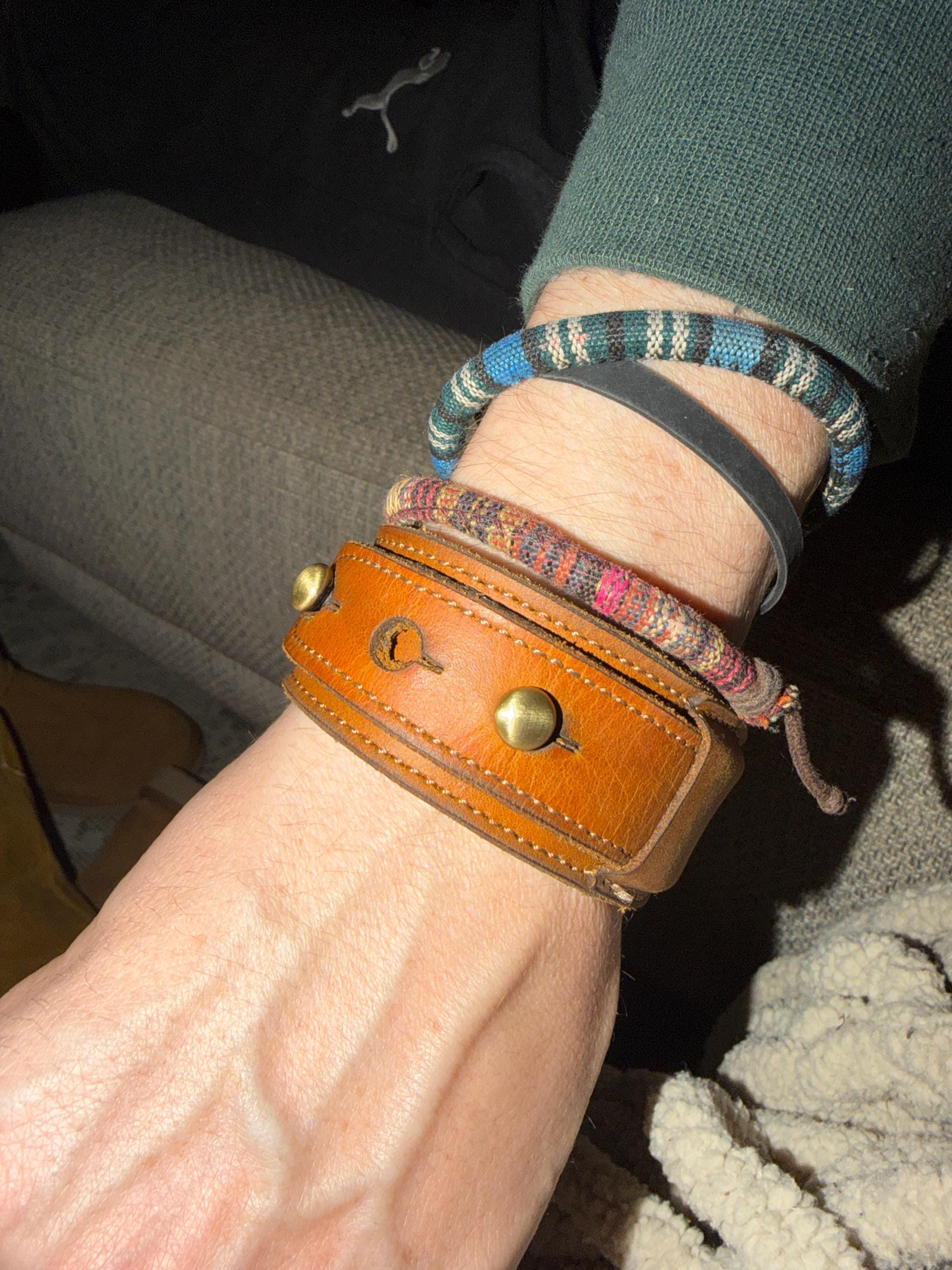 *Leather is a natural product. Some natural markings and bits of character will occur throughout each bracelet. The bracelet you receive may differ slightly from the one shown in the pictures.
