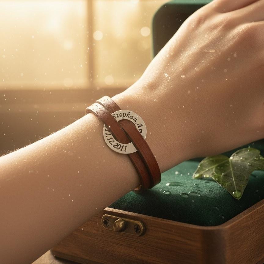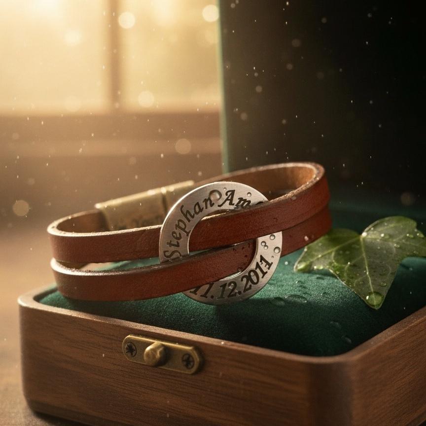 This handcrafted men's leather bracelet can be engraved with two names, a meaningful date, or a special phrase like “Forever” or “Infinity”. A timeless piece of jewelry that blends rustic charm with personal meaning — perfect for daily wear or as a thoughtful gift.