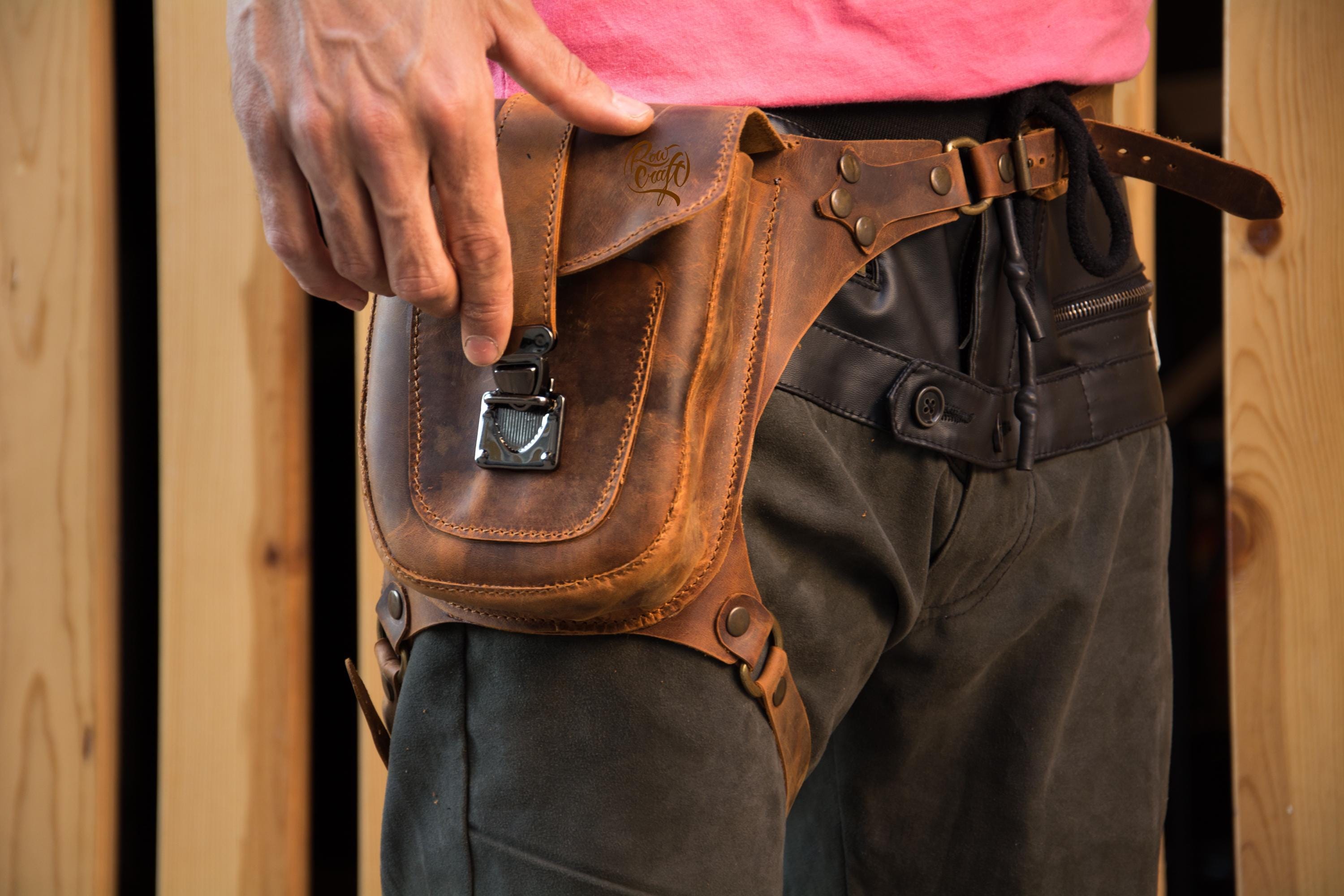 Discover this premium handmade leather thigh bag, designed for everyday carry, travel, festivals, motorcycle riding, hiking, and hands-free lifestyle.